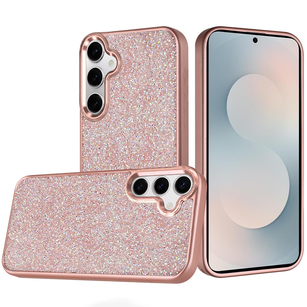 For Samsung s25 FE Crystal Glass Diamond with Metallic Buttons and Edges Hybrid Case - Rose Gold