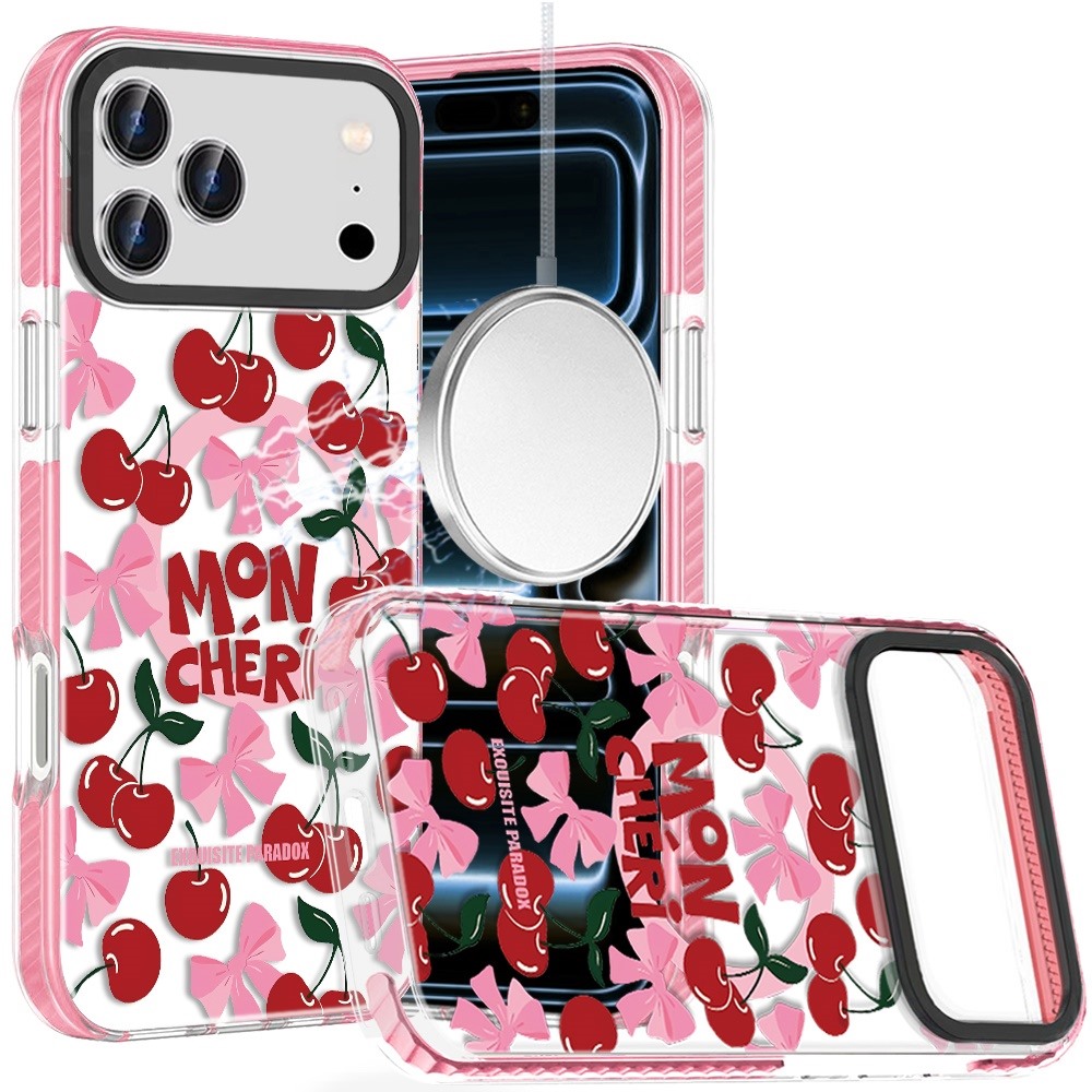 For iPhone 17 Pro Max Beautiful Magnetic Hybrid IMD Design Case - Red Cherries