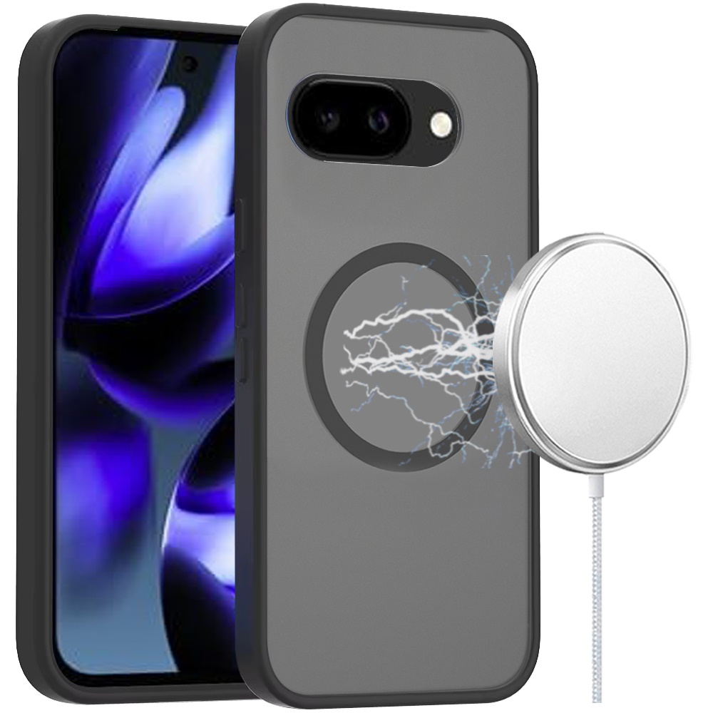 For Google Pixel 9A [Magnetic Circle] Smooth Safe Matte Feel Hybrid Case - Black