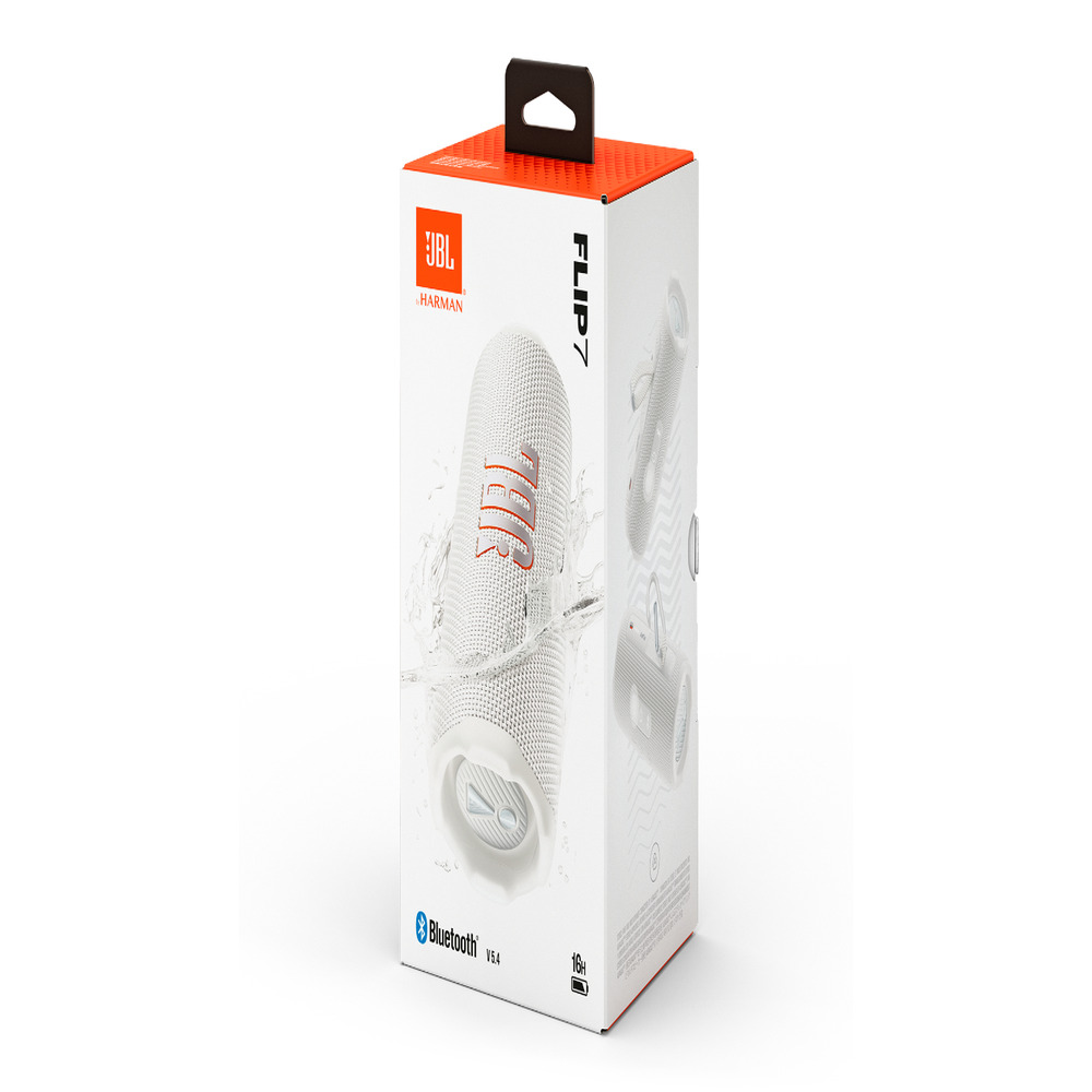 JBL Flip 7 - Portable Waterproof and Drop-Proof Speaker, Bold Pro Sound with AI Sound Boost, 16Hrs of Playtime, and PushLock System - white (Room)