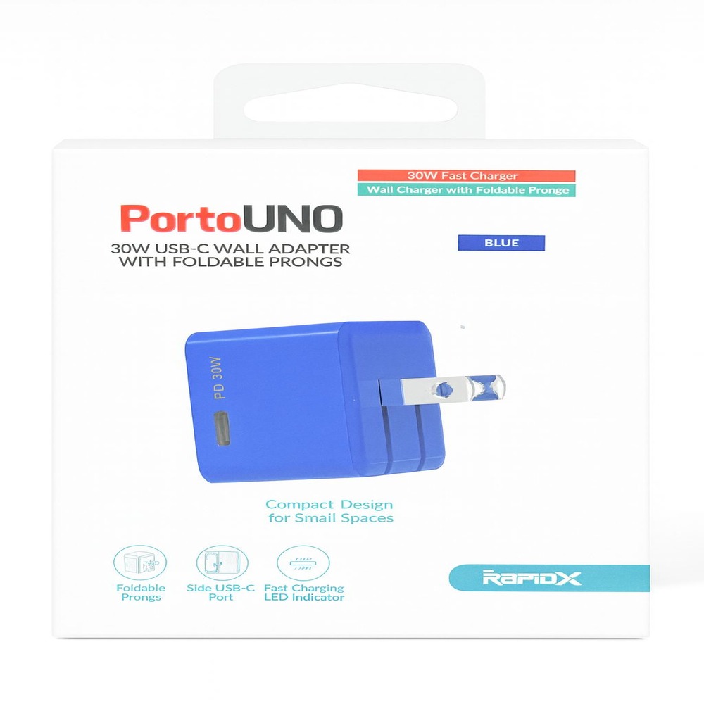RapidX Porto uno 30W Fast Charger USB C Wall Power Adapter w/foldable prongs - BLUE (B15)