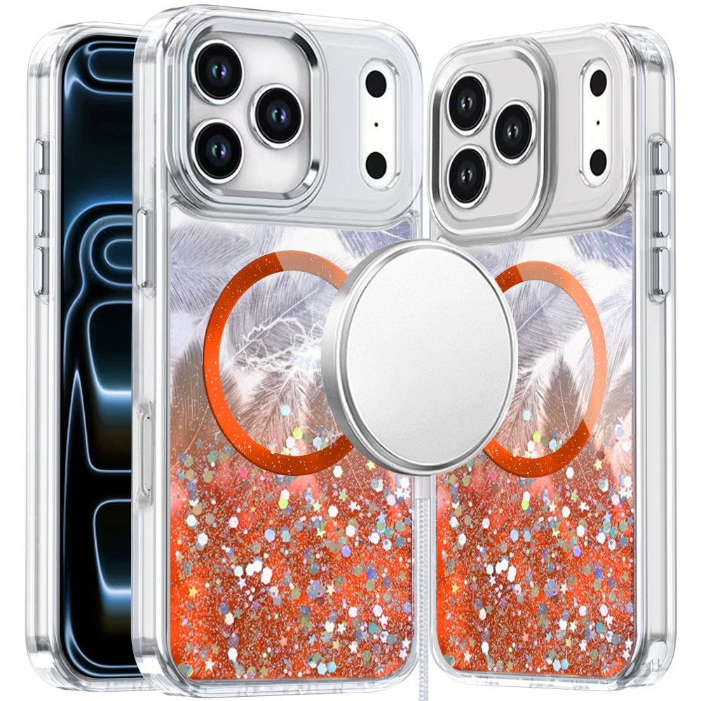 For iPhone 17 Pro Max Epoxy Glitter Shimmer [Magnetic Circle] Hybrid Case - Cosmic Orange