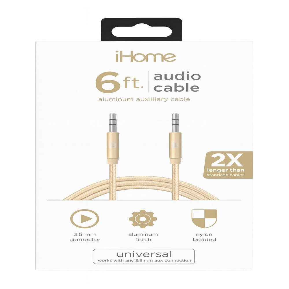 iHome 6 Foot Braided Audio Aux Cable in Gold (A5)