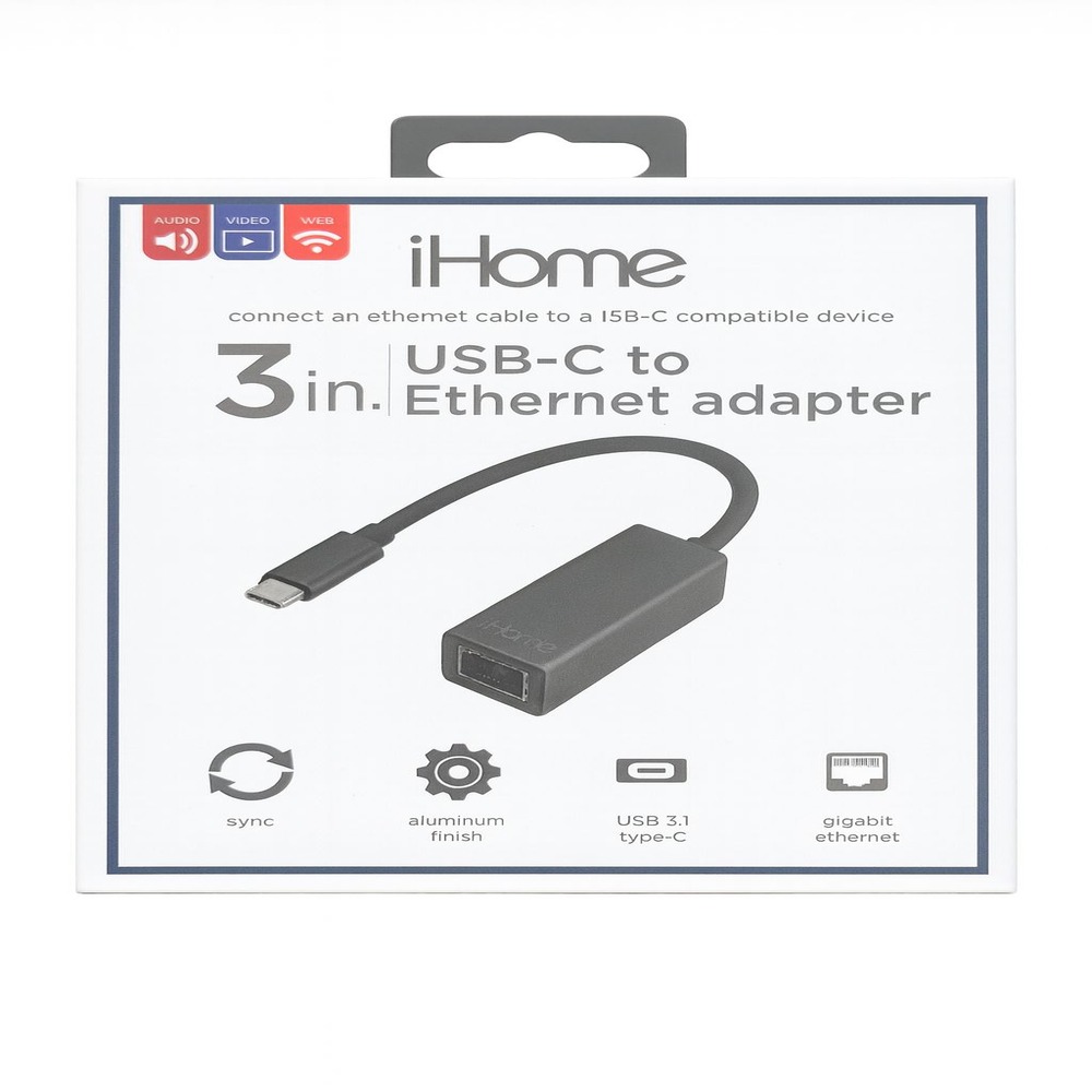 iHome 3-Inch USB Type-C Ethernet Adapter - BLACK (LANE A9)