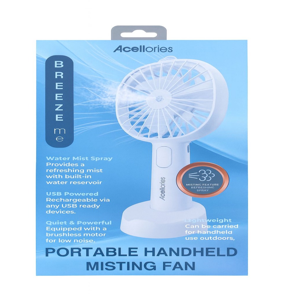Acellories Portable Rechargeable Handheld Misting Fan in White (LANE A4)