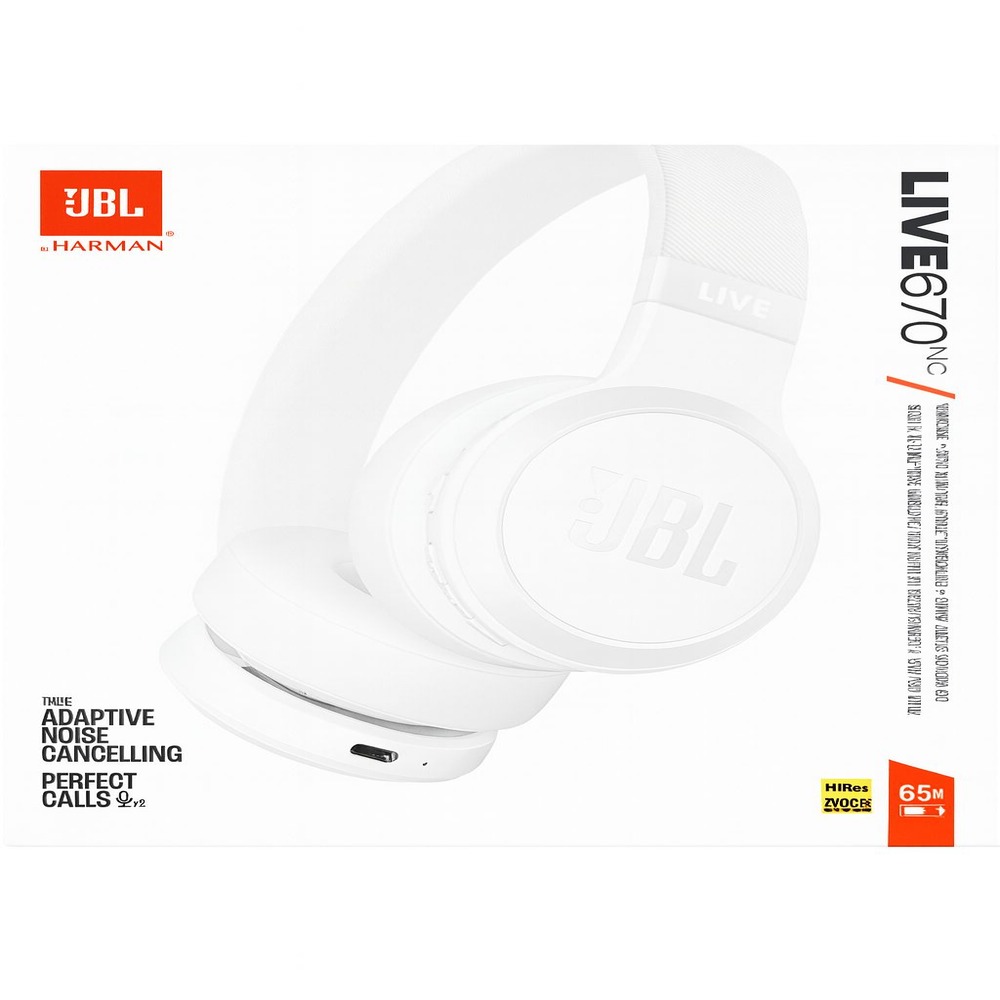 JBL Live 670NC - Wireless On-Ear Headphones with Adaptive Noise Cancelling with Smart Ambient, Up to 65H Battery Life with Speed Charge, Lightweight, Comfortable and Foldable Design (WHITE) JBLLIVE670NCWHTAM(JBL#8)