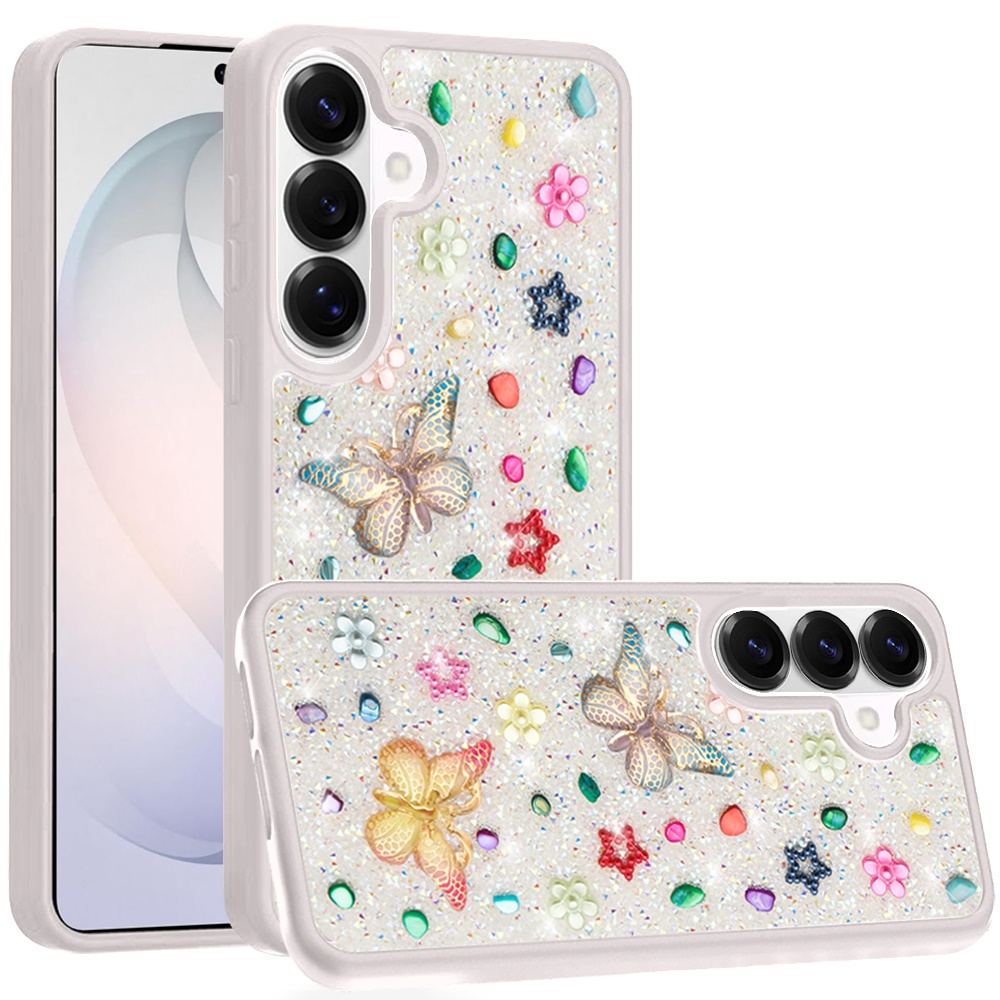 For Samsung s26 Butterfly Ornaments Diamond Bling Glitter Hybrid Case - White