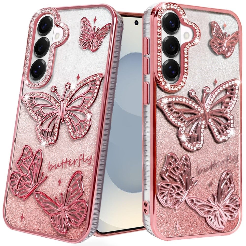 For Samsung s26 Butterfly Freedom Shimmer Glitter Thick TPU Case Cover - Rose Gold