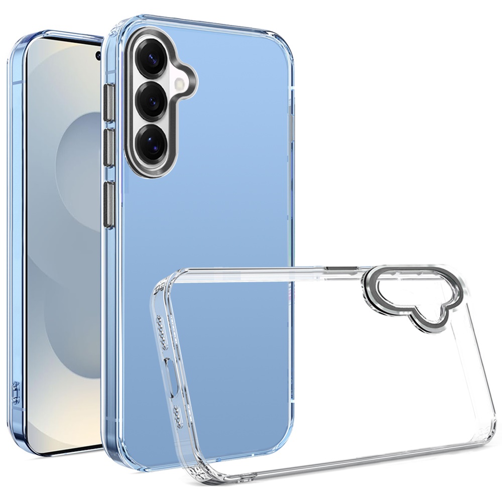 For Samsung s26 Transparent Clear Hybrid with Matching Metal Buttons and Camera Protection - Black