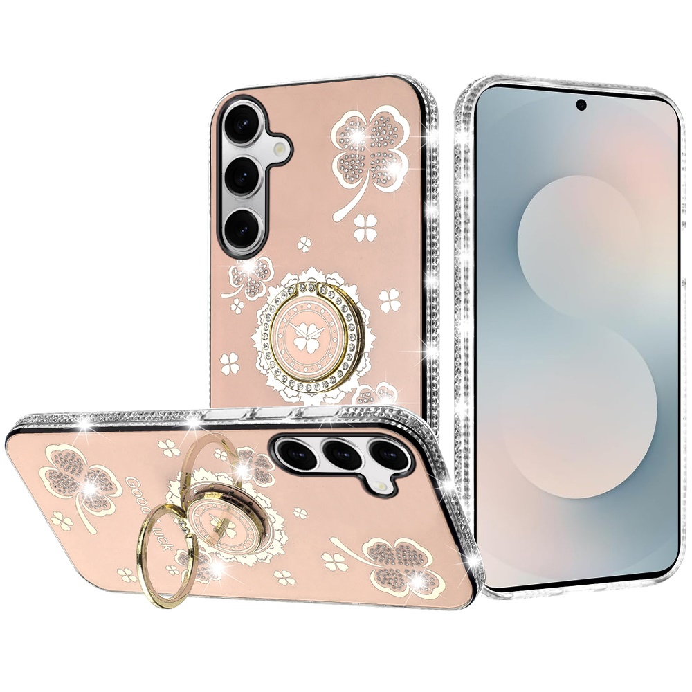 For Samsung s26 Splendid Glitter with Diamonds All Around Edges Ring Stand Case Cover - Gold