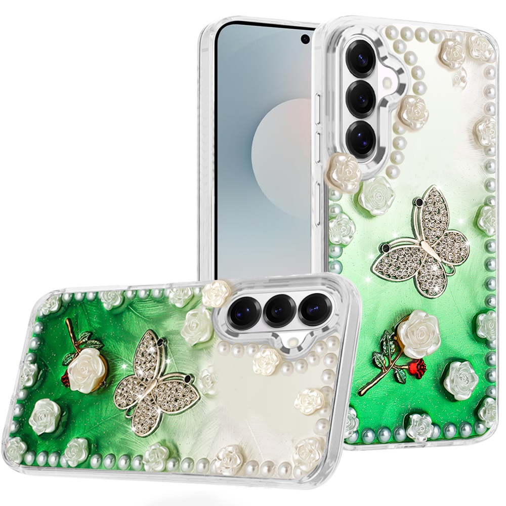 For Samsung s26 Pearls Epoxy Glitter Ornaments Design Chrome Edged Case - 6