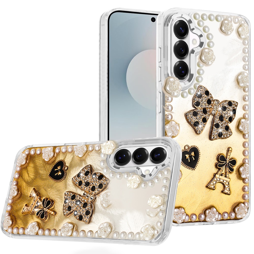 For Samsung s26 Pearls Epoxy Glitter Ornaments Design Chrome Edged Case - 9