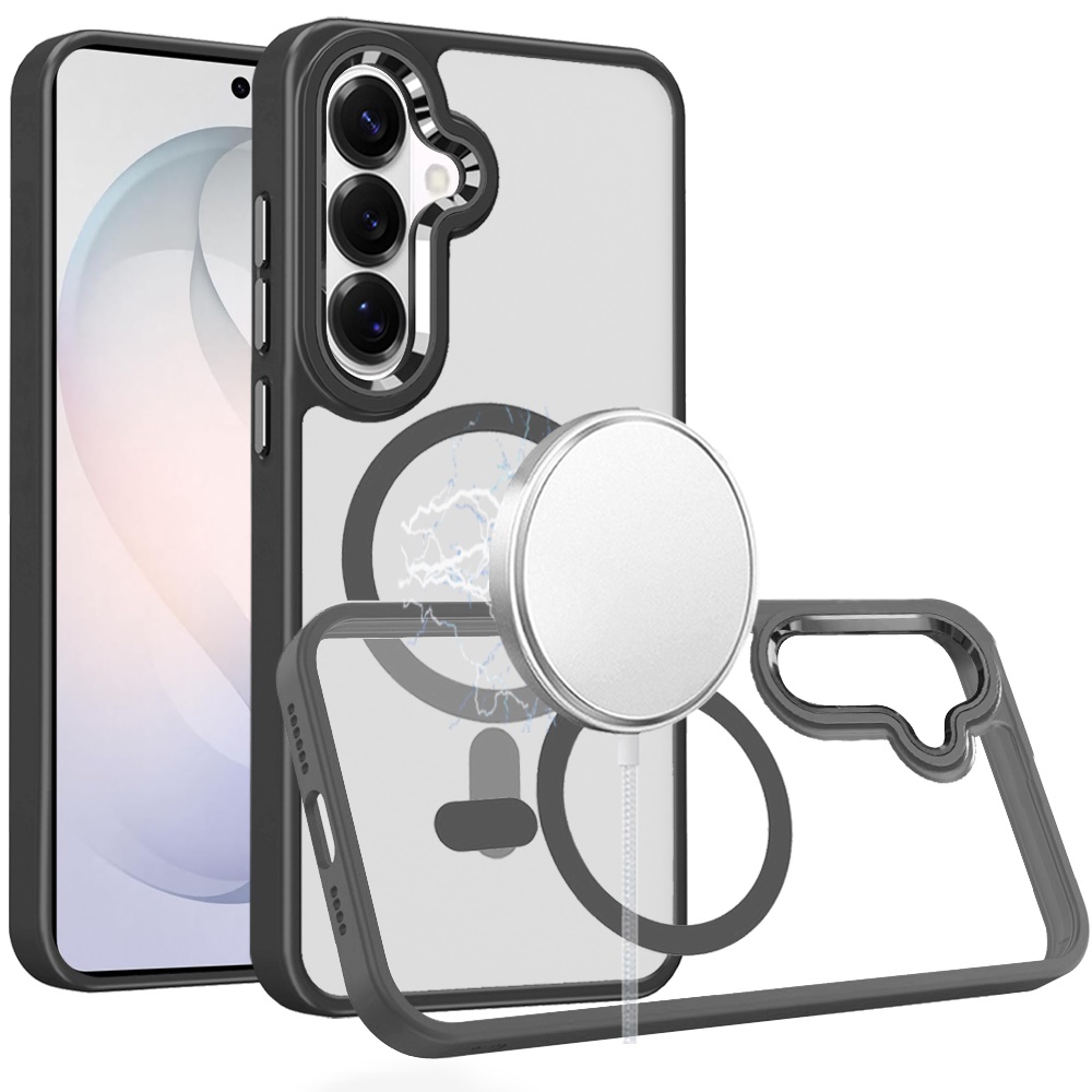 For Samsung s26 Greatest Clear Acrylic [Magnetic Circle] ShockProof ToughThick Metal Button Hybrid - Black