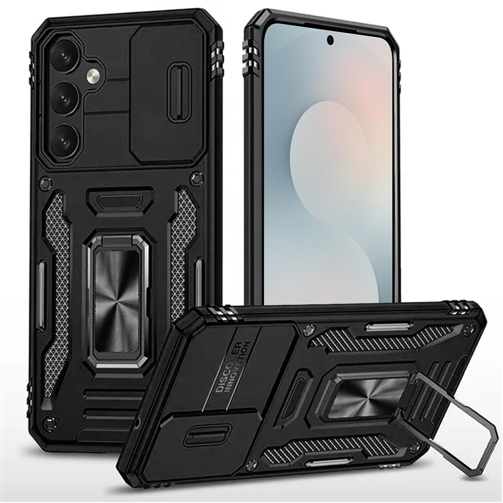 For Samsung s26 Edge Utter Tough Metal Ring Movable Camera Window Hybrid Case Cover - Black