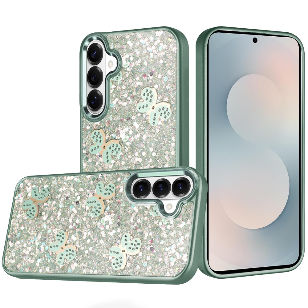 For Samsung s26 Edge Cute Butterfly Ornaments Diamonds Shimmer Matching Metallic HQ Hybrid - Teal