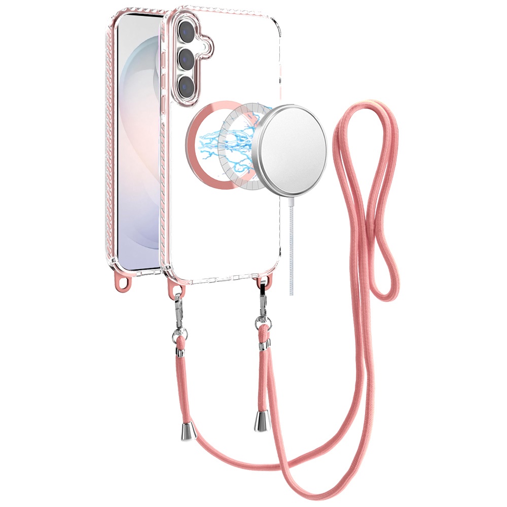 For Samsung s26 Edge Transparent HQ Clear Line Design Edged Hybrid [Magnetic Circle] with Matching Lanyard - Light Pink
