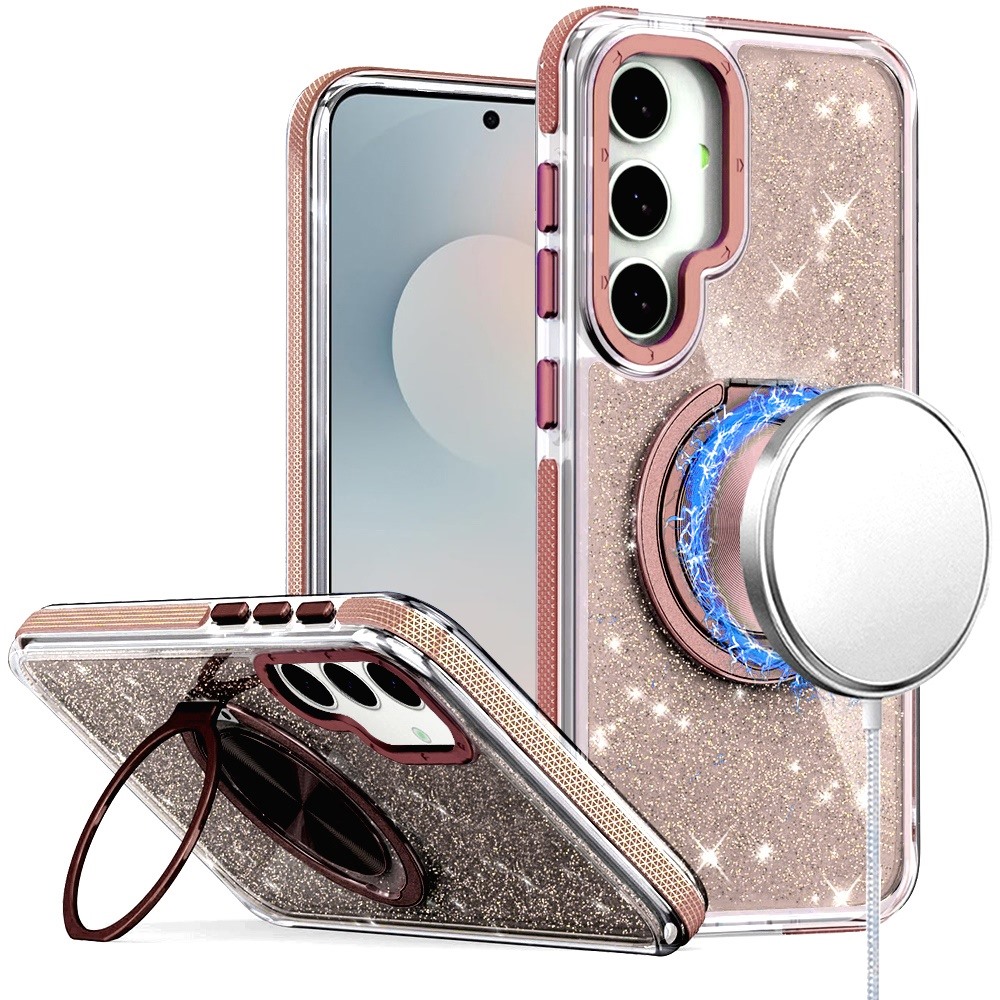 For Samsung s26 Plus Glitz HQ Shimmer Glitter [Magnetic Ring Circle] with 360 degree Rotational Ring Kickstand Tough Hybrid Case - Gold
