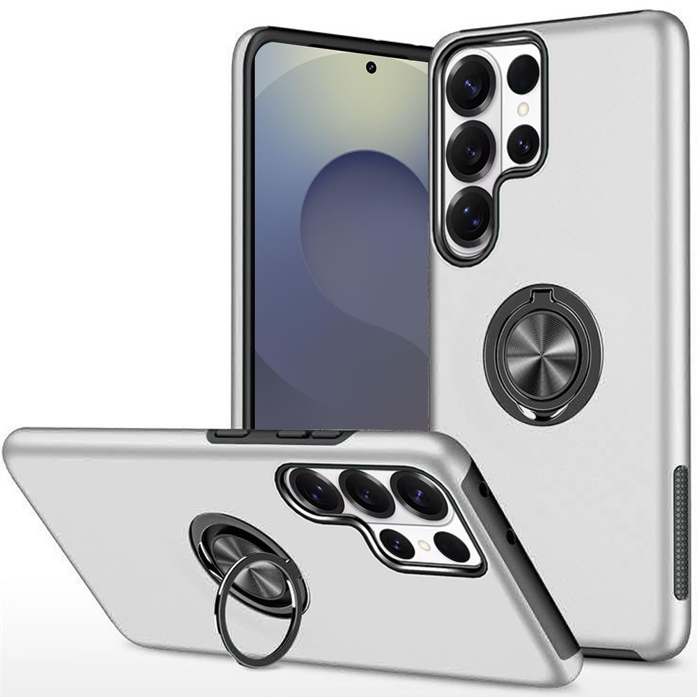 For Samsung s26 Ultra CHIEF Oil Painted Magnetic Ring Stand Hybrid Case Cover - Silver