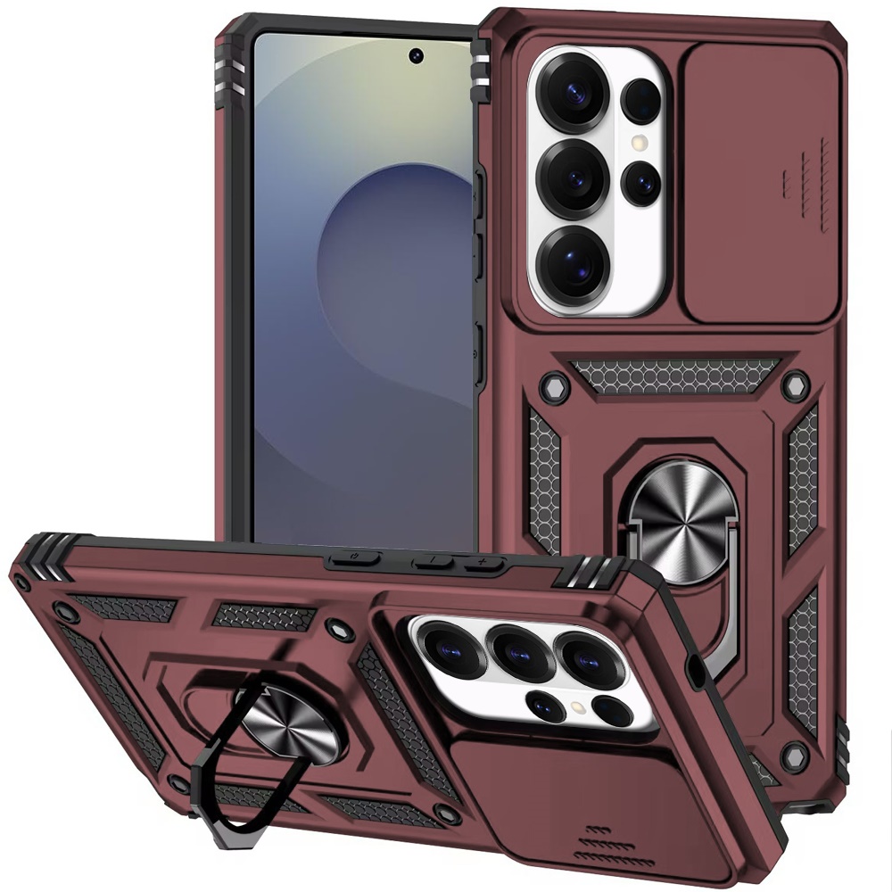 For Samsung s26 Ultra Well Protective Magentic Ring Stand Camera Protective Cover Case - Burgundy
