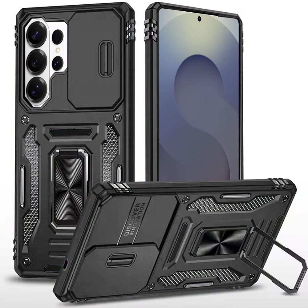 For Samsung s26 Ultra Utter Tough Metal Ring Movable Camera Window Hybrid Case Cover - Black
