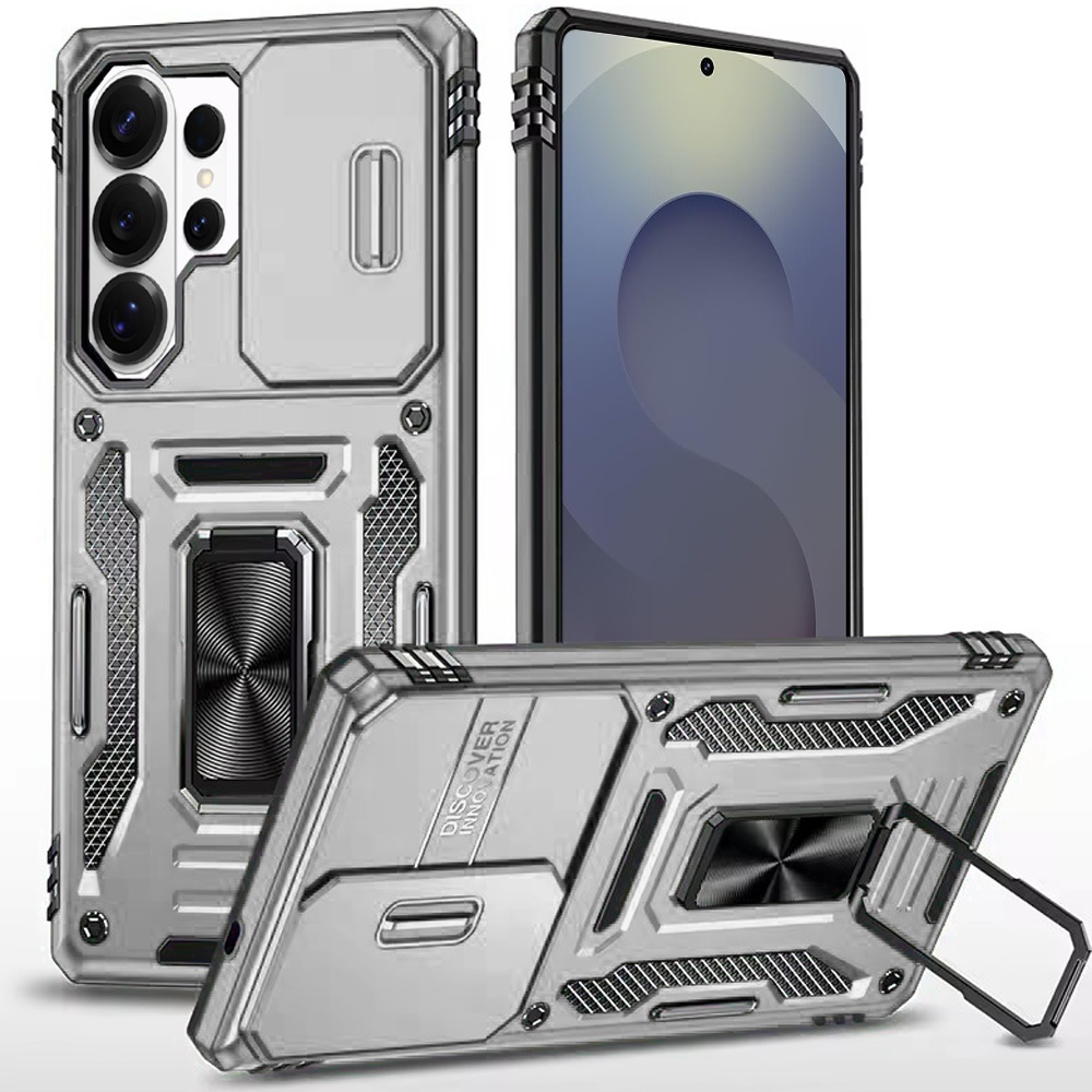 For Samsung s26 Ultra Utter Tough Metal Ring Movable Camera Window Hybrid Case Cover - Silver