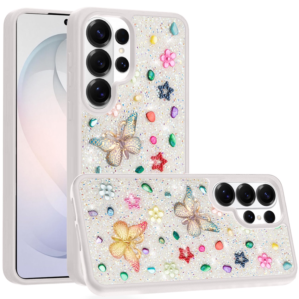 For Samsung s26 Ultra Butterfly Ornaments Diamond Bling Glitter Hybrid Case - White