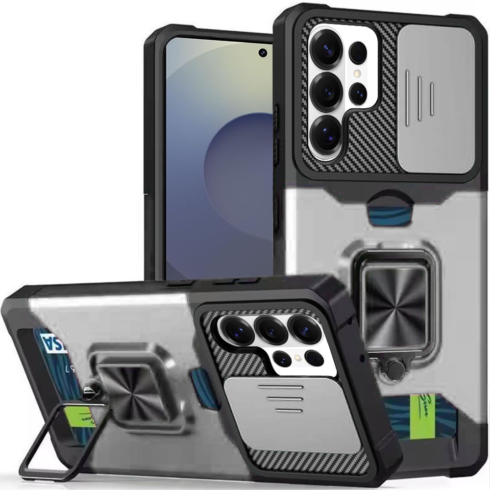 For Samsung s26 Ultra Multi-Functional Card Magnetic Ring Stand Hybrid Camera Case Cover - Silver