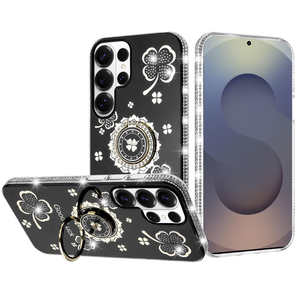 For Samsung s26 Ultra Splendid Glitter with Diamonds All Around Edges Ring Stand Case Cover - Black