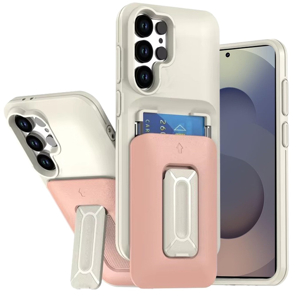 For Samsung s26 Ultra Card Holder (2X) with Wrist Strap Hybrid With KickStand - Black+Black