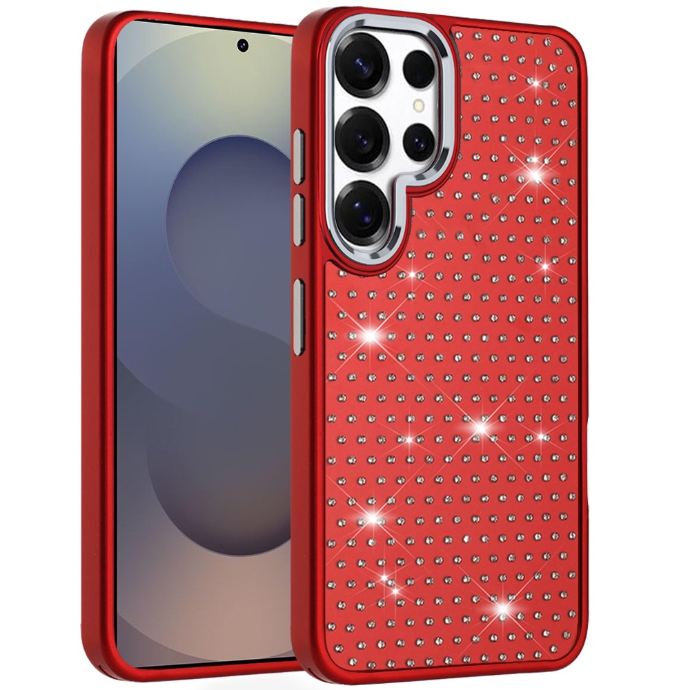For Samsung s26 Ultra Beautiful Diamond Metallic Design Metal Chrome Edged Hybrid - Red