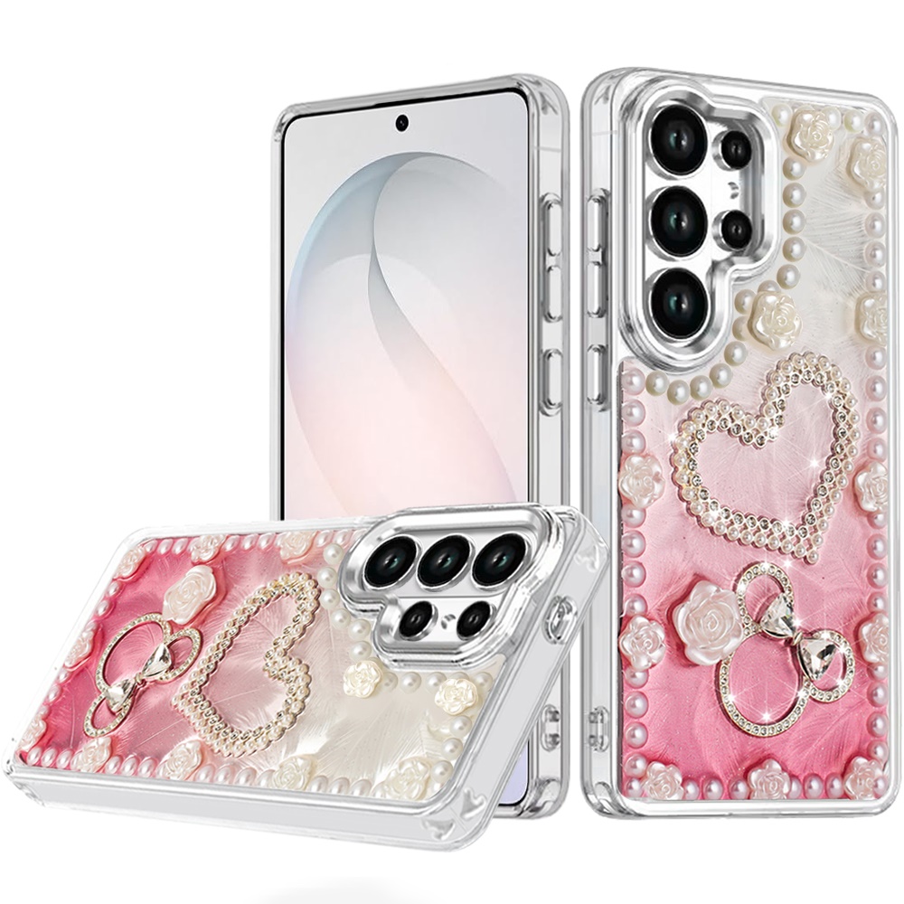 For Samsung s26 Ultra Pearls Epoxy Glitter Ornaments Design Chrome Edged Case - 10