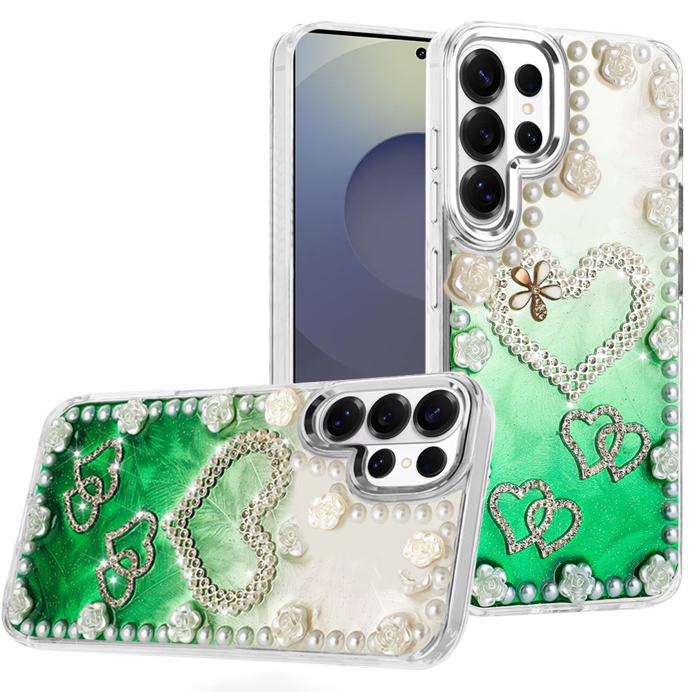 For Samsung s26 Ultra Pearls Epoxy Glitter Ornaments Design Chrome Edged Case - 5