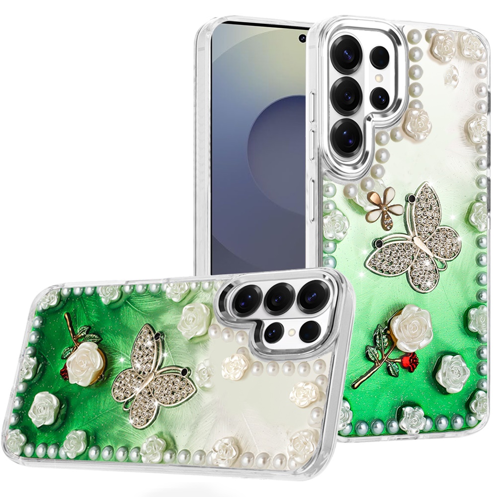 For Samsung s26 Ultra Pearls Epoxy Glitter Ornaments Design Chrome Edged Case - 6
