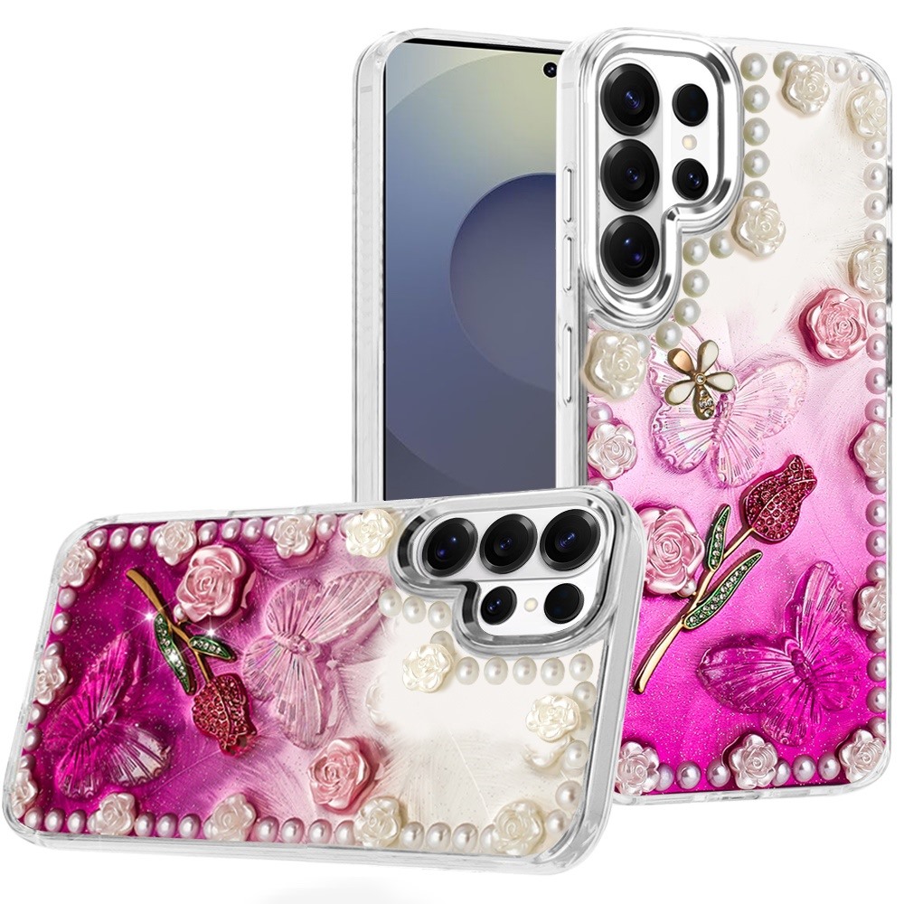 For Samsung s26 Ultra Pearls Epoxy Glitter Ornaments Design Chrome Edged Case - 7