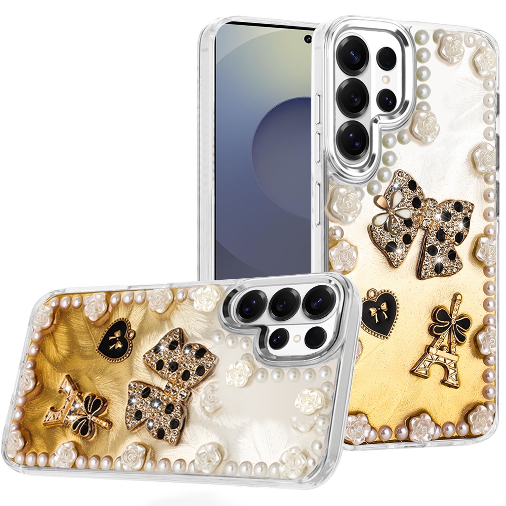 For Samsung s26 Ultra Pearls Epoxy Glitter Ornaments Design Chrome Edged Case - 9