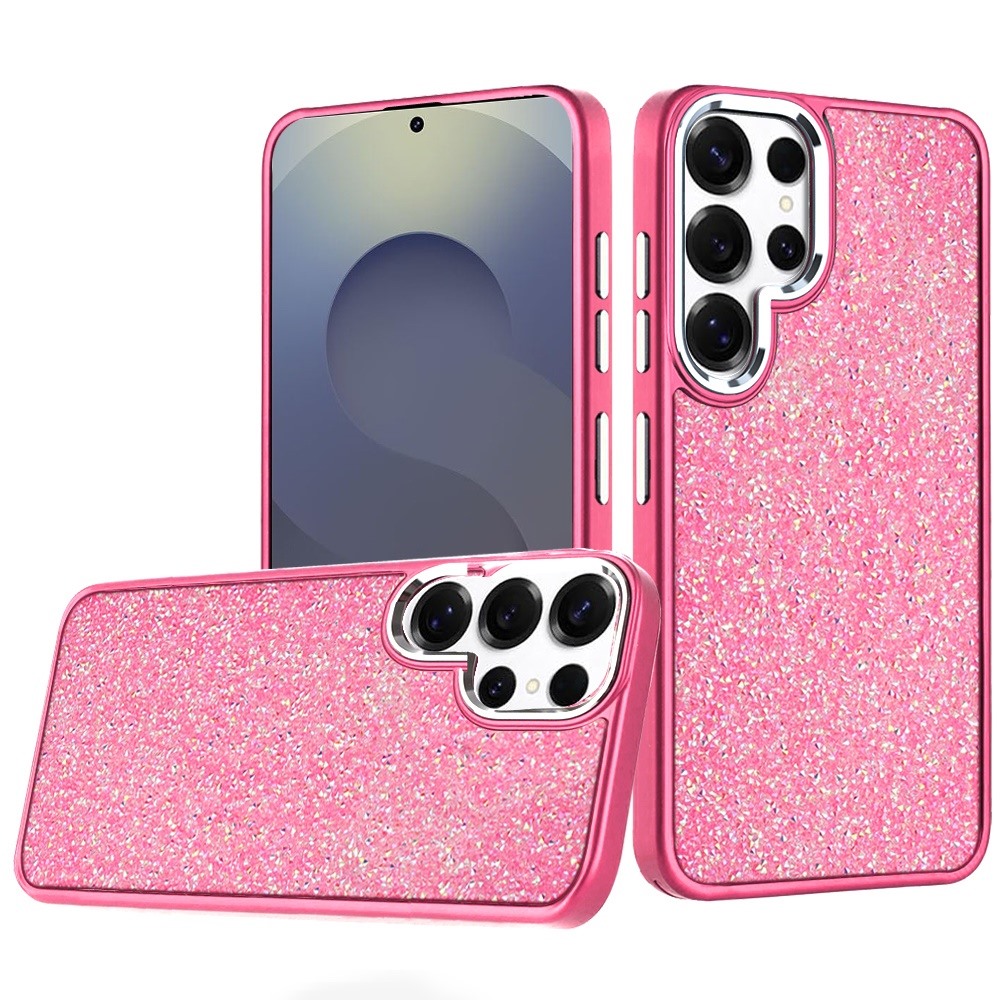 For Samsung s26 Ultra Crystal Glass Diamond with Metallic Buttons and Edges Hybrid Case - Hot Pink