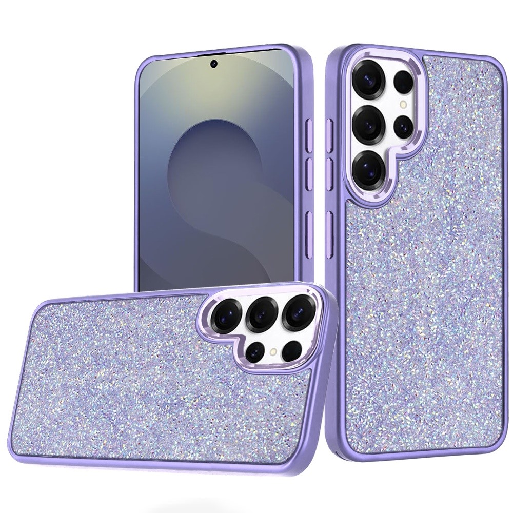For Samsung s26 Ultra Crystal Glass Diamond with Metallic Buttons and Edges Hybrid Case - Dark Purple
