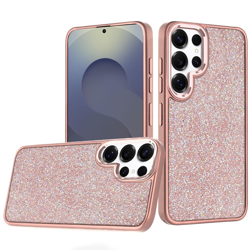 For Samsung s26 Ultra Crystal Glass Diamond with Metallic Buttons and Edges Hybrid Case - Rose Gold