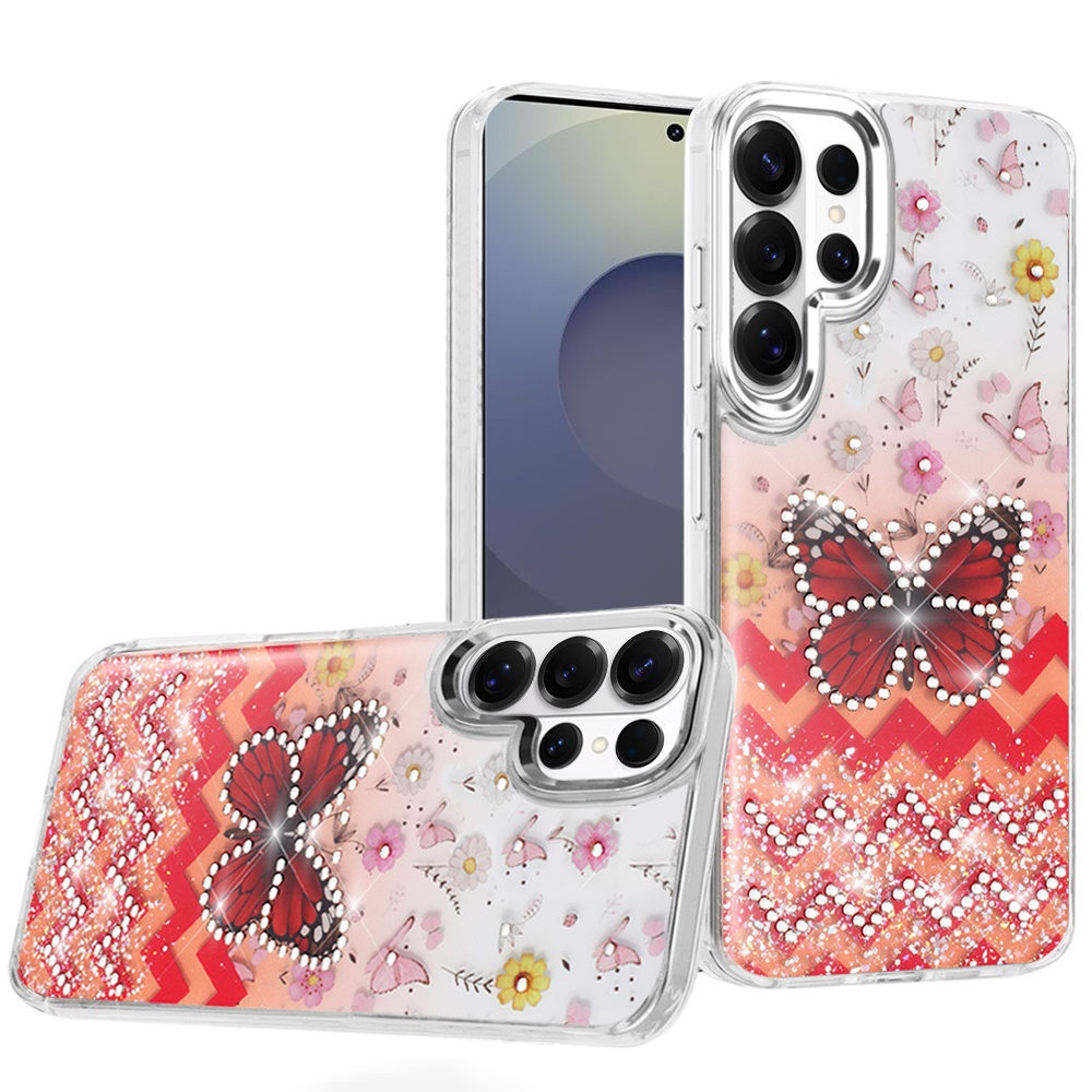 For Samsung s26 Ultra Resin Epoxy Design Diamond Metal Edged Hybrid Case - F