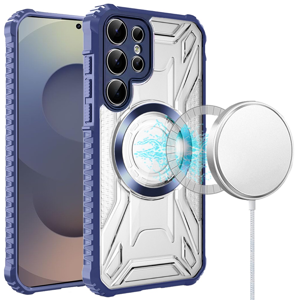 For Samsung s26 Ultra [Magnetic Circle] CD Pattern Transparent Rugged Hybrid - Dark Blue