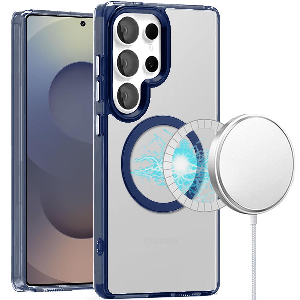 For Samsung s26 Ultra Magnetic Circle Ring Transparent Premium Acrylic with Metal Buttons & Camera Raised Lip - Blue