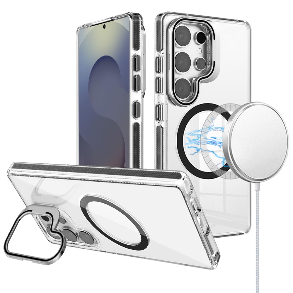 For Samsung s26 Ultra Camera Metallic Stand [Magnetic Circle] Transparent Colorful Matching Edged Tough Hybrid Case - Black
