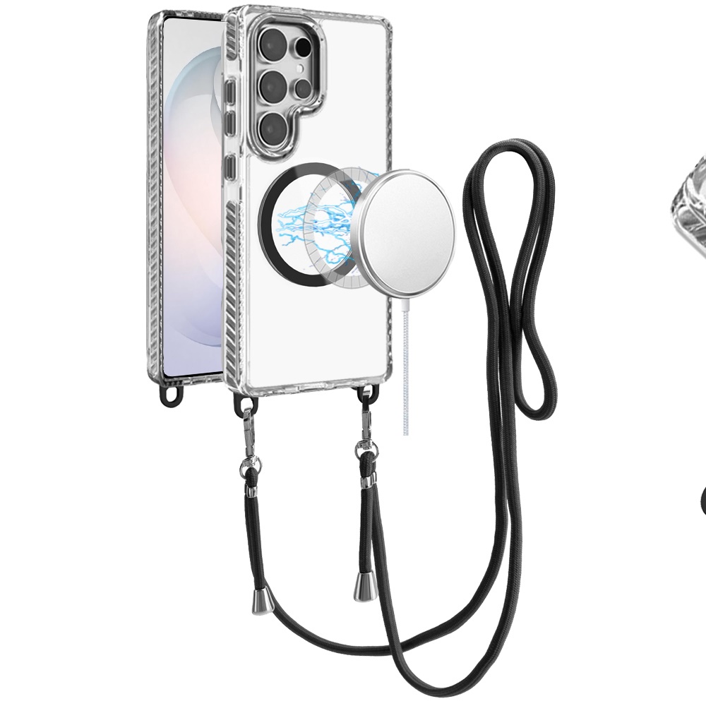 For Samsung s26 Ultra Transparent HQ Clear Line Design Edged Hybrid [Magnetic Circle] with Matching Lanyard - Black