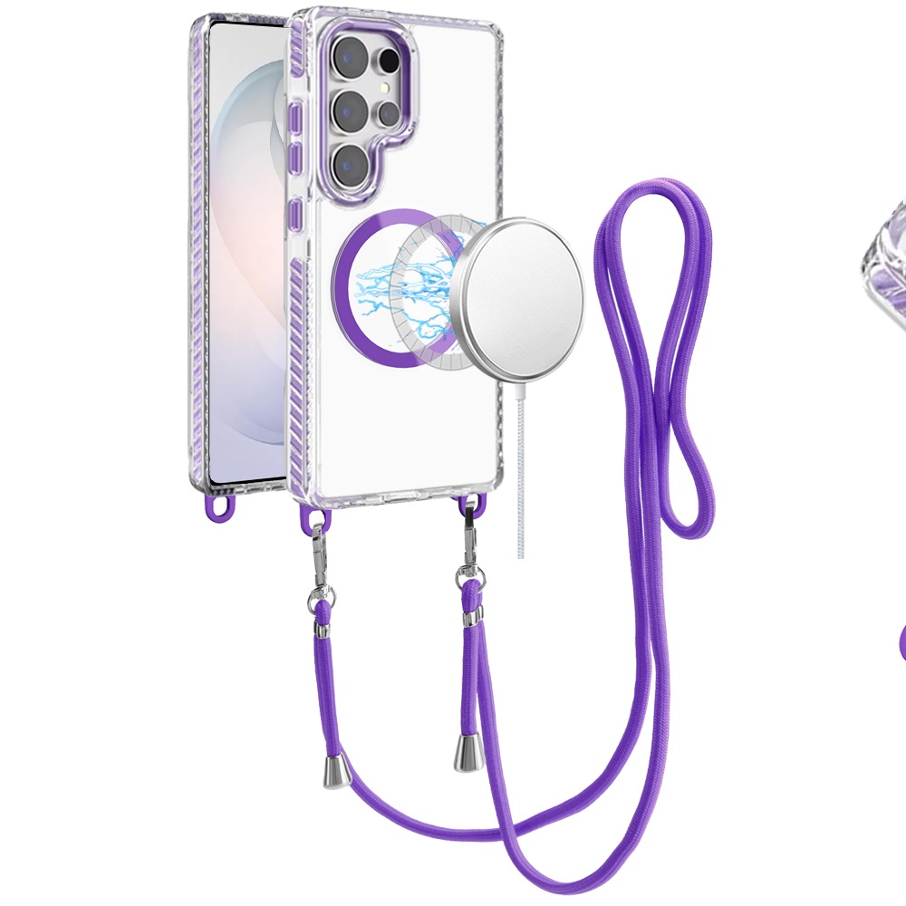 For Samsung s26 Ultra Transparent HQ Clear Line Design Edged Hybrid [Magnetic Circle] with Matching Lanyard - Dark Purple