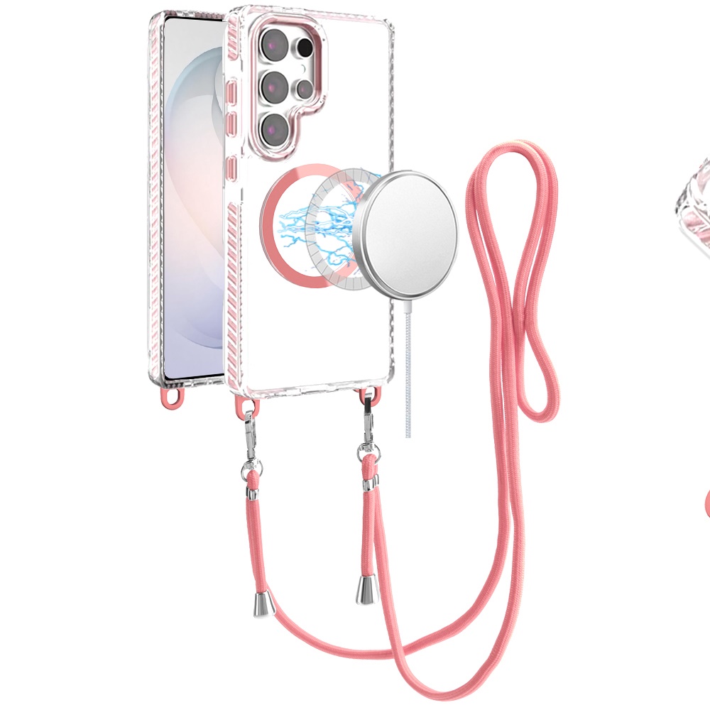For Samsung s26 Ultra Transparent HQ Clear Line Design Edged Hybrid [Magnetic Circle] with Matching Lanyard - Light Pink