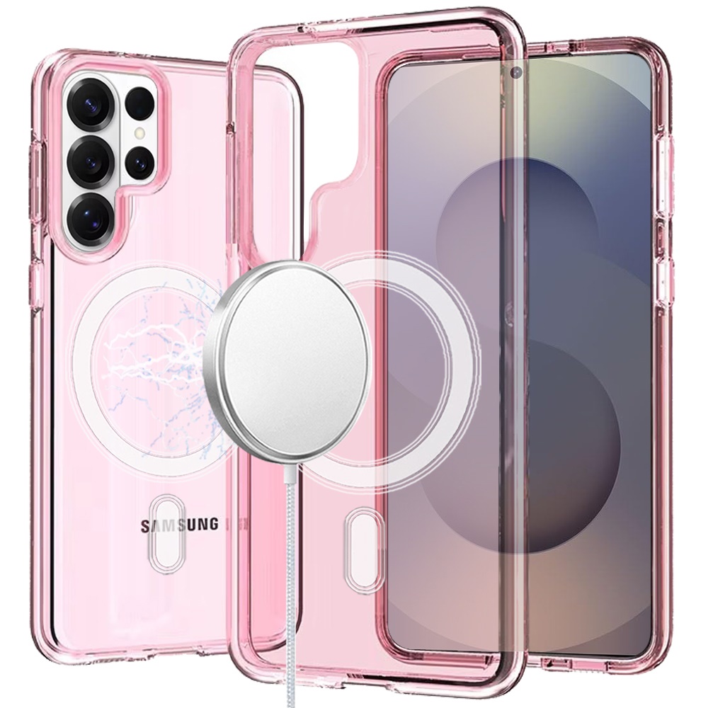 For Samsung s26 Ultra Sturdy Ultra [Magnetic Circle] Thick 3mm Transparent Hybrid - Pink