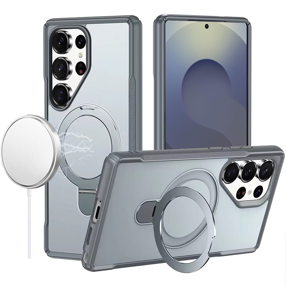 For Samsung s26 Ultra Matte Finish Simplified Magnetic Ring With Stand Hybrid Case - Gray