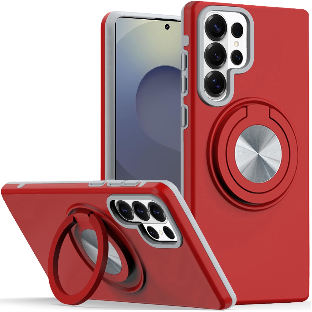For Samsung s26 Ultra Metal CD Pattern Matte Finished Hybrid with Rotational Ring [Car Mount Friendly] Case - Red