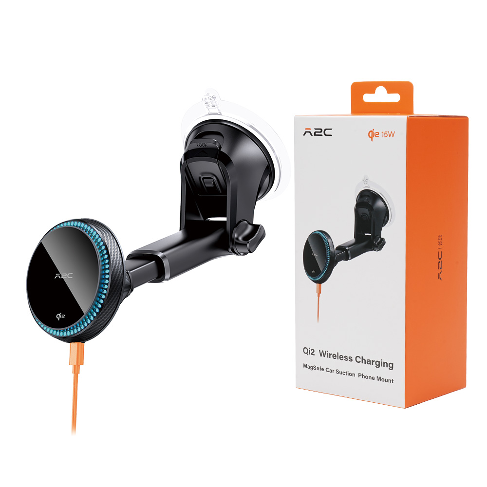 A2C QI2 WIRELESS CHARGING MAGSAFE CAR SUCTION PHONE MOUNT - 15W - AUTOMATIC HEAT DISSIPATION SYSTEM - BUILT IN COOLING FAN - 2 IN 1 DESIGN FOR DASHBOARD AND WINDSHIELD - EXTENDABLE ARM SUCTION - WH0S2-S02 (LANE B7 A2C#8)