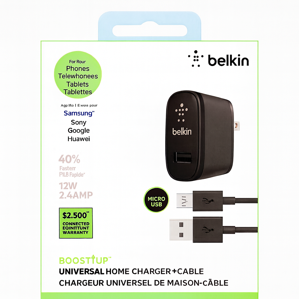 Belkin BOOST-UP Universal Home Charger with Micro USB Cable 12 W AND 2.4 AMP - BLACK (B1 BELKIN#3)